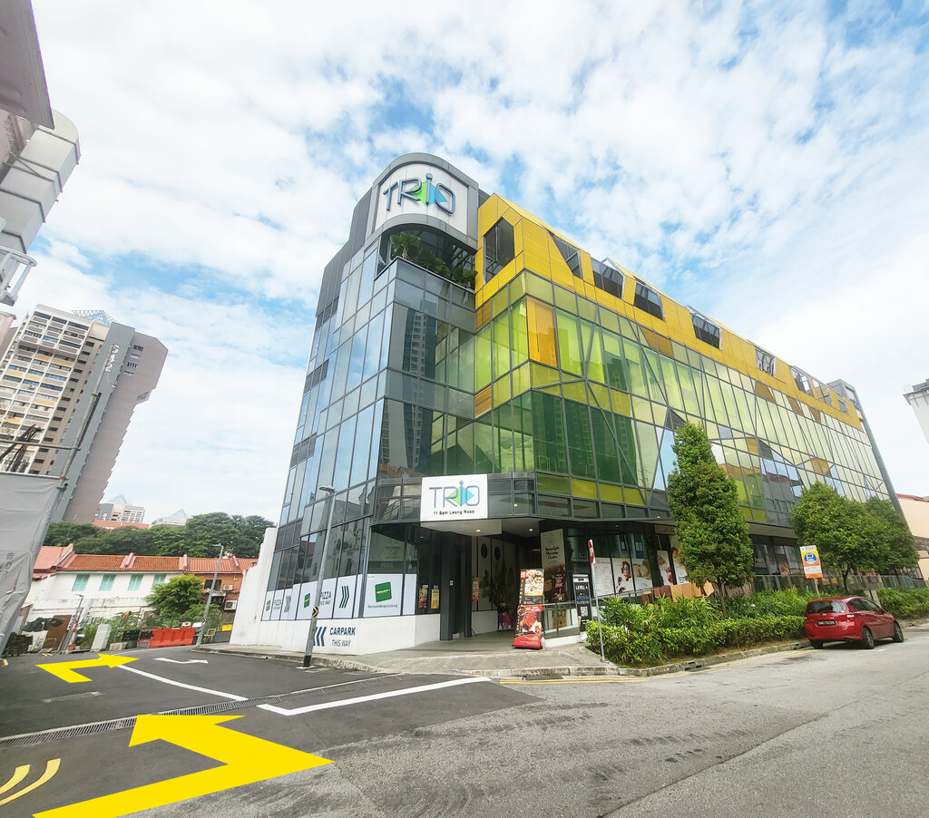 TRIO is located at 11 Sam Leong Road. The car park to TRIO is at the back of the building, accessible by turning left into a slip road in front of TRIO building.